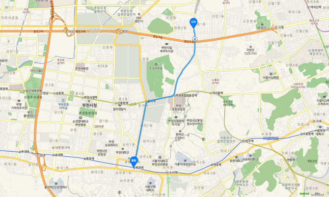 부천 북부역 하차 후 50번 버스 오시는 길