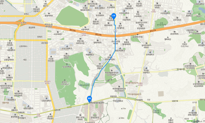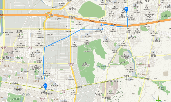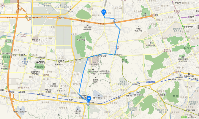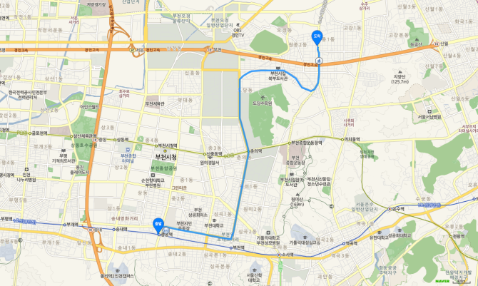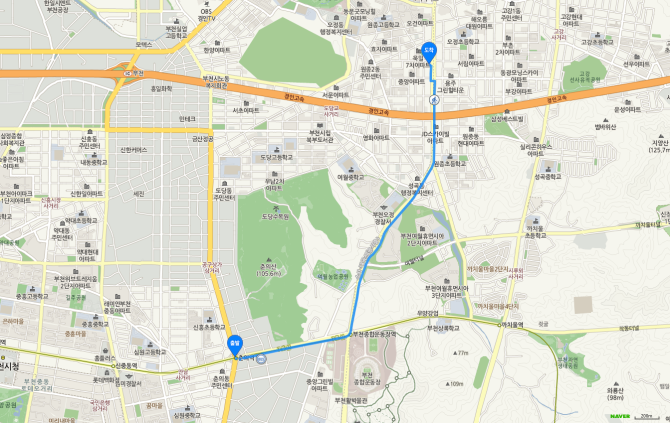 춘의역 하차 후 75번 버스 오시는 길