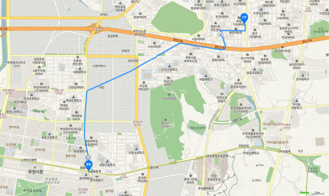 부천 북부역 하차 후 70-2번 버스 오시는 길
